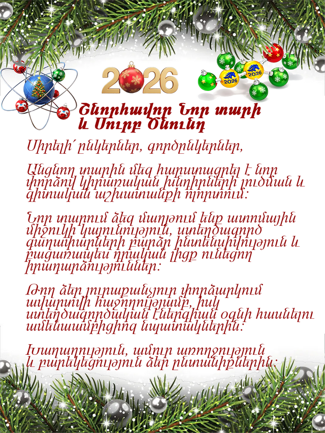 Դեկտեմբերի 23-ին, Ալիխանյանի անվան Ազգային Գիտական Լաբորատորիայի (Երևանի